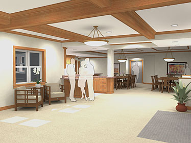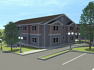 A 24-unit assisted living facility consisting of two mirror-image buildings connected by a bridge.