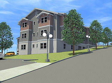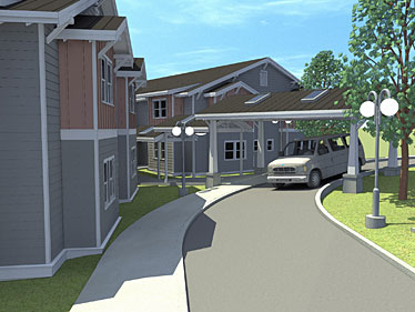 A 24-unit assisted living facility consisting of two mirror-image buildings connected by a bridge.